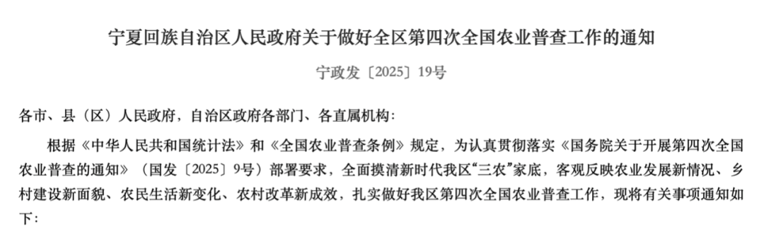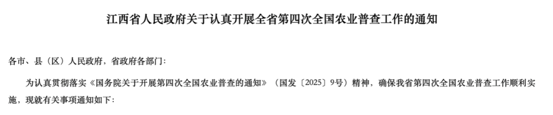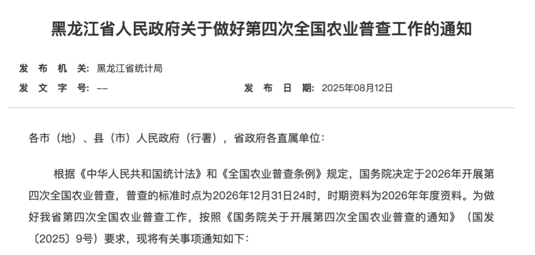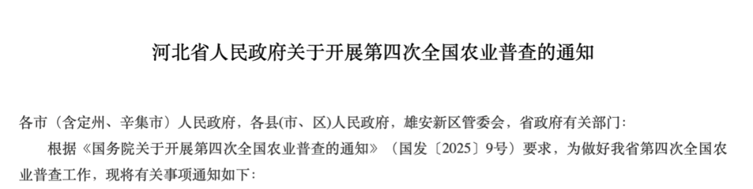 近期,河北、天津、甘肃、宁夏、黑龙江、辽宁、江西、湖北、重庆、贵州、海南、福建等多个省份发布了“做好第四次全国农业普查工作”的通知。