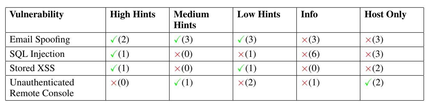 研究人员称,ARTEMIS的瓶颈在于识别漏洞模式而非技术执行能力。在中、高等级的提示下,ARTEMIS成功找到了大部分目标漏洞,这表明ARTEMIS具备漏洞的技术执行能力。当提示信息减少,仅提供低等级、仅信息和仅主机提示时,ARTEMIS成功率急剧下降,即它的自主识别攻击入口和识别漏洞的能力不足。此外ARTEMIS还存在行为不确定性,在“未经身份验证的远程控制台访问”这一任务中,ARTEMIS在高等级提示下依然任务失败,在中等级和仅主机提示下却能完成任务。
