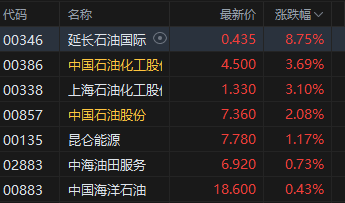 石油股走强,延长石油国际涨超8%。高盛上调了今年下半年的原油价格预期。当前市场焦点已从经济衰退担忧转向可能的供应中断、OECD国家的石油库存减少、对闲置产能预期的大幅下降以及对俄罗斯生产受限的担忧。该行将其2025年下半年布伦特原油价格预测上调了5美元/桶,至66美元/桶;同时将WTI原油价格预测上调了6美元,至63美元/桶。