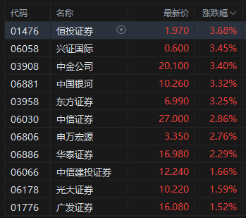 中资券商股活跃,中国银河涨超3%。开源证券指出,OCI和股票自营、海外业务高增或带来券商中报超预期,预计25年上半年上市券商业绩同比增速有望超50%(扣非口径),环比增速可期。2024年新国九条、央行等金融部委组合拳稳股市的长效影响延续,个人投资者和中长资金持续流入,交易活跃度中枢抬升逻辑验证,券商港股业务和投行业务逐步改善,当下估值仍在低位,机构欠配显著,继续推荐券商板块机会。关注业绩预告、稳定币主题以及基准回补等催化。